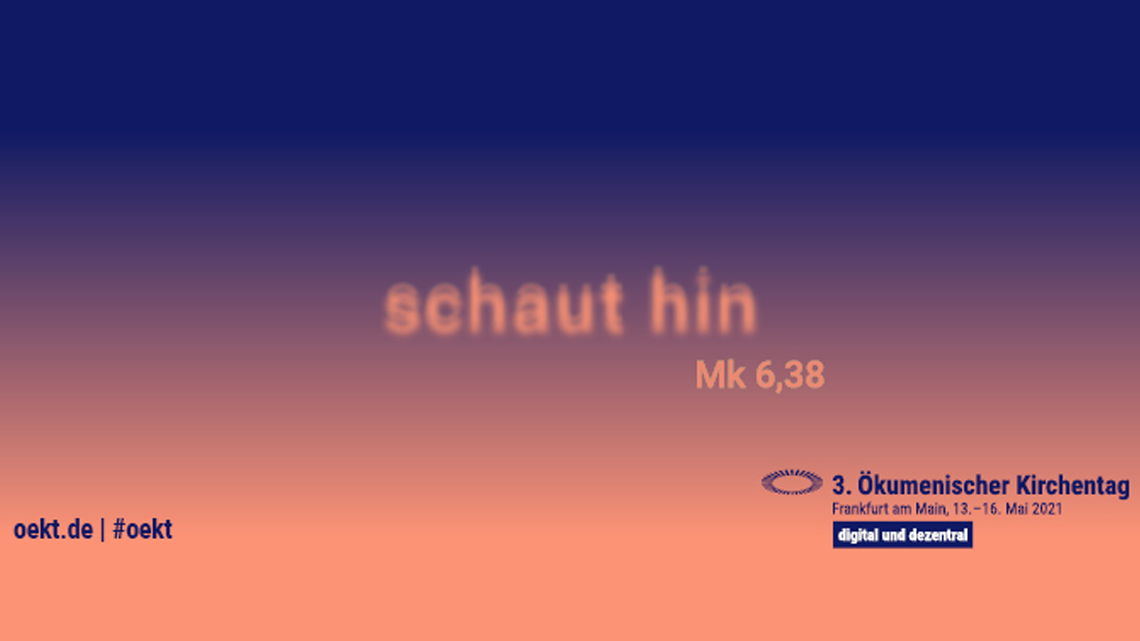 Aktuelles Reportage Glaube Gesellschaft»Schaut hin« hieß das Motto des 3. Ökumenischen Kirchentags in Frankfurt am Main. Aufgrund der Corona-bedingten Pandemiesituation fand der Kirchentag vor allem im virtuellen Raum in digitalen Foren statt. In den Blick gerieten die drängendsten Fragen der Gegenwart – vom Klimawandel bis zur Frage des Umgangs kirchlicher Einrichtungen mit dem Sterbewillen unheilbar Kranker.