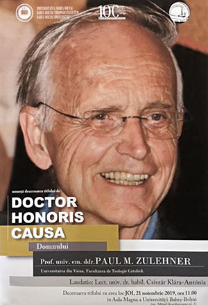 Paul M. Zulehner wurde mit der Ehrenpromotion von der Babeş-Bolyai Universität, Cluj / Rumanien, für seine Verdienste in der Entwicklung einer Pastoraltheologie in Ost(Mittel)Europa gewürdigt.