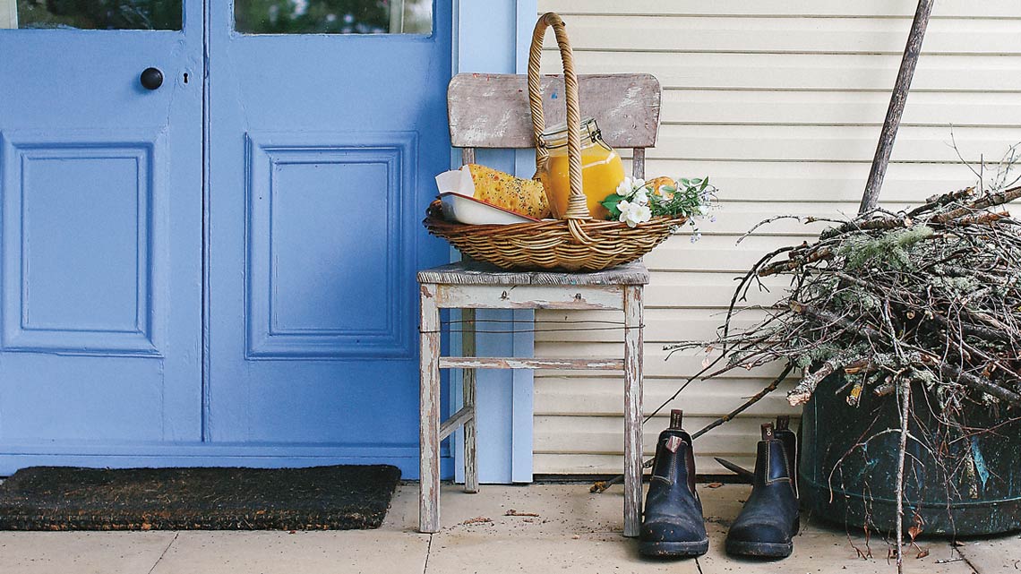 Und manche dieser Anlässe verlangen nach einem Korb vor der Tür: Ein neugeborenes Baby, eine Krankheit, ein Freund, der sich von einer OP erholt, Liebeskummer, eine schlimme Diagnose oder eine große Enttäuschung. Mir ist natürlich klar, dass ein Korb mit Essen nicht alle Probleme lösen kann, aber immerhin ist er ein Zeichen, dass jemand helfen will. Und auf der praktischen Seite bedeutet er, dass man ein gutes, wohltuendes Mahl zur Hand hat: Essen, das nähren, Mut machen und aufheitern soll.