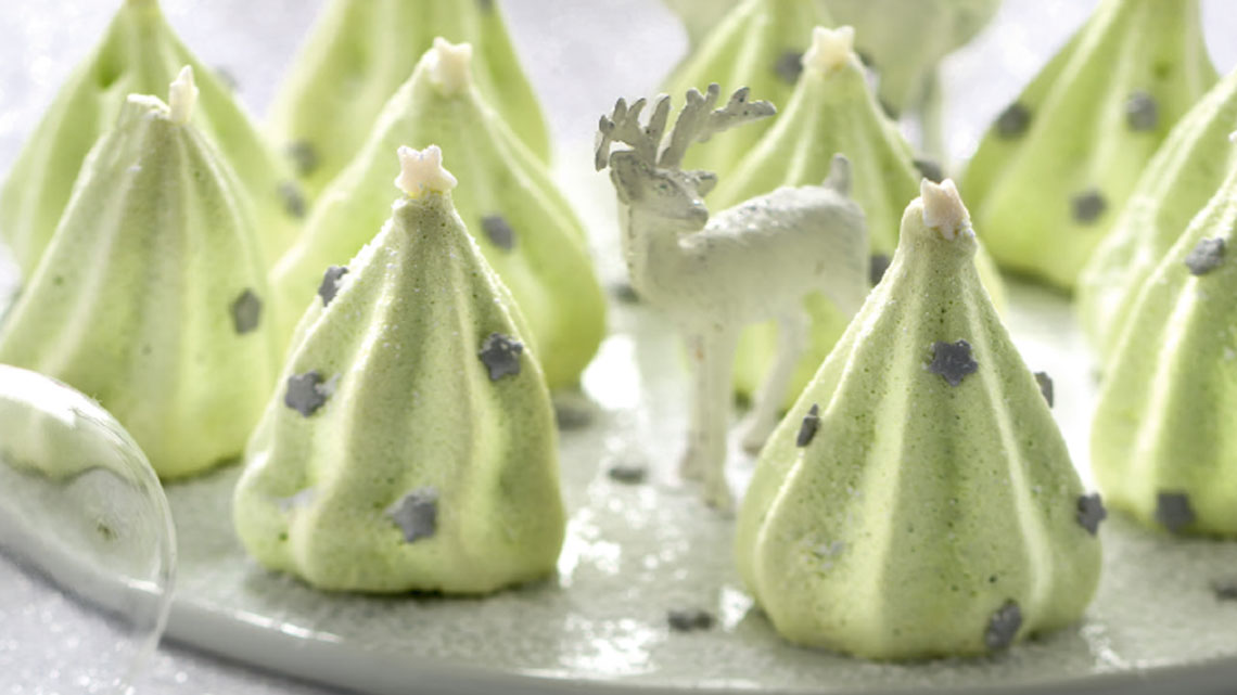 Ein wundervoller Hingucker auf dem Plätzchenteller sind diese kleinen Tannenbäumchen aus Baiser. Überraschen Sie Ihre Liebsten damit.