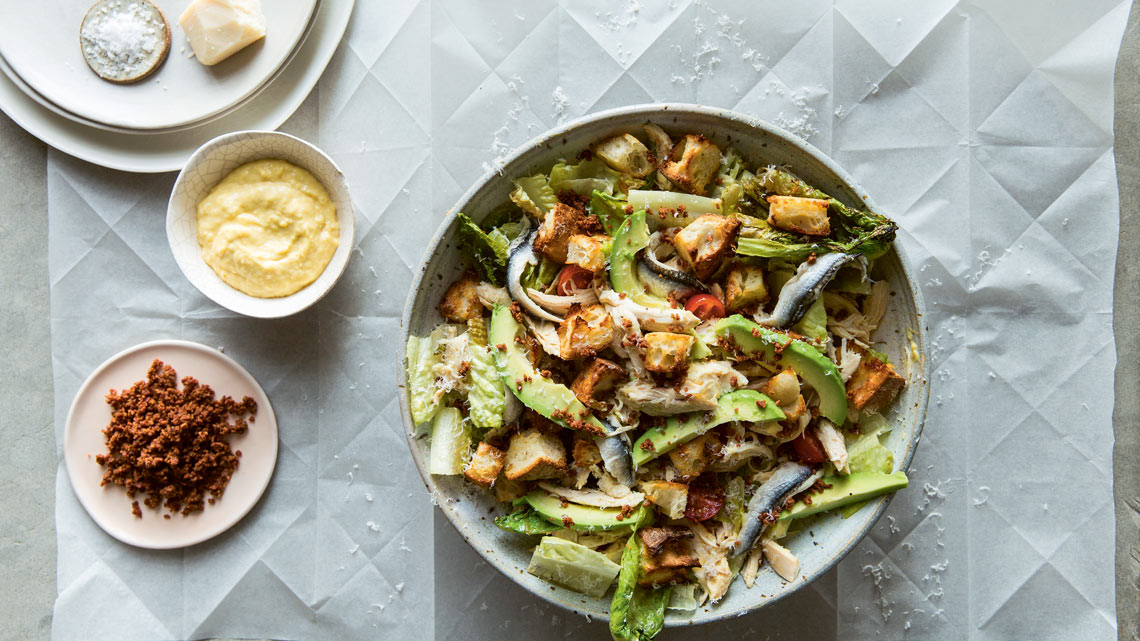 Rezept für Caesar Salad mit Hähnchen und Avocado