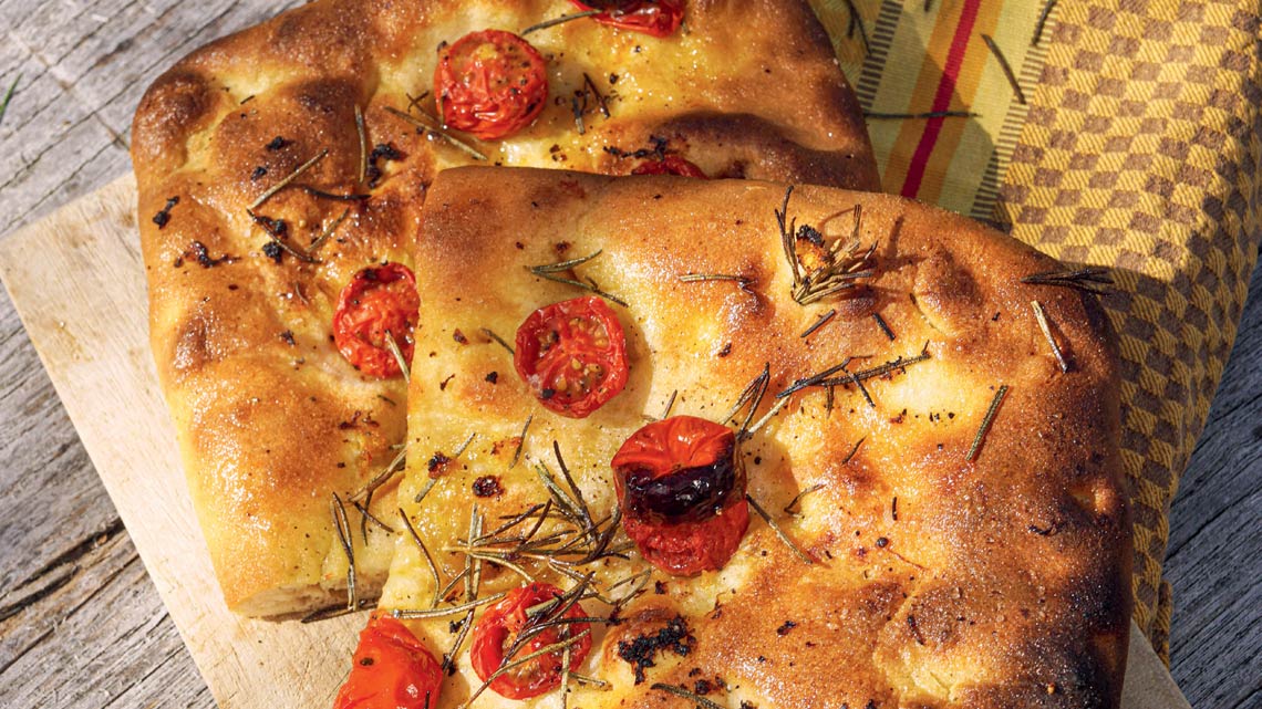 • Die Focaccia ca. 25 Minuten backen, bis sie goldgelb ist.