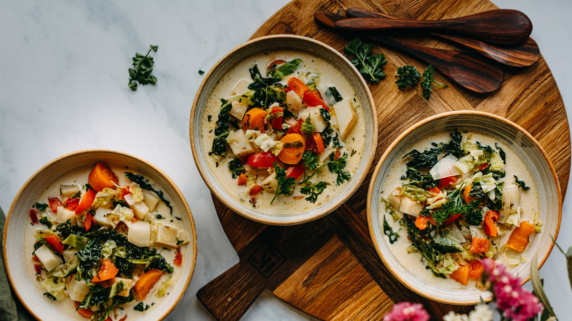 Diese Suppe aus vielerlei herbstlichem Gemüse ist nicht nur wärmend, sondern – einmal vorgekocht – lässt sie sich gut wieder aufwärmen und mehrmals genießen.