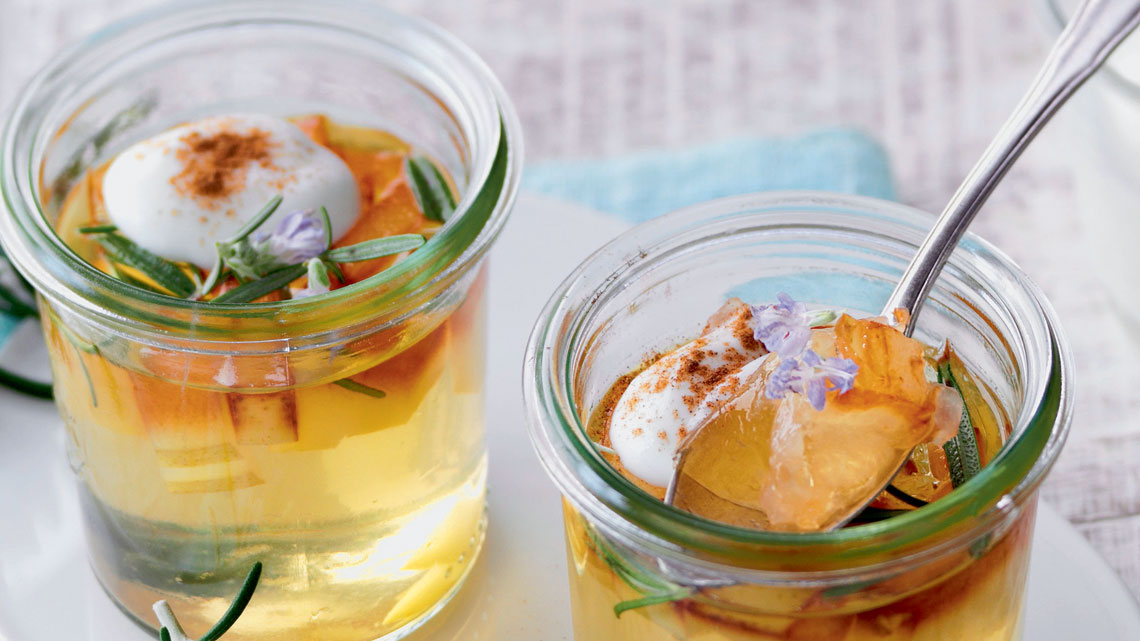 Dieses fruchtige Dessert schmeckt leicht und erfrischend. Die ungewöhnliche Kombination aus Apfel und Rosmarin wird Sie begeistern.