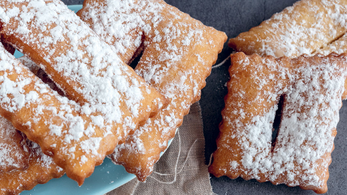 Aus Mehl, Butter, Eiern, Hefe und Milch wird ein Teig nach Art der Hefeteige gemacht. Wenn er in der Schüssel gegangen ist, so sticht man Stücke aus der Masse, drückt sie ½ cm dick, schneidet verschobene Vierecke davon, läßt sie auf dem mit Mehl bestreuten Backbrett gut gehen und backt sie, im Schmalze schwimmend, unter öfterem Umdrehen schön gelb; dann legt man sie einen Augenblick auf Brotschnitten zum Ablaufen und bestreut sie mit Zucker und Zimt. Bei allem Schmalzgebackenem muß die Platte erwärmt sein, auf die es zu liegen kommt. Da die Fasnachtsküchlein sehr aufgehen im heißen Schmalz, darf man nicht zu viele auf einmal einlegen.
