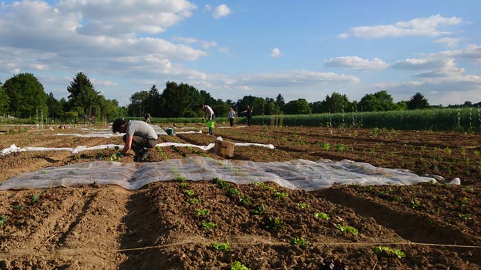 Gemeinsam mit dem Dienstleister »Ackerhelden« aus Essen wird nun nach Büroschluss gemeinsam geackert, gesät und gepflanzt. Die Ackerhelden bieten ihren Service nicht nur für Unternehmen, sondern auch für private Gartenfreunde in diversen Großstädten an. Sie kooperieren mit Bioland- oder Demeter-Bauern vor Ort. Deren landwirtschaftliche Betriebe stellen ihre Ackerflächen zur Bepflanzung zur Verfügung. Diese werden in Parzellen aufgeteilt und an Einzelpersonen von Mai bis November verpachtet. Die Organisation und Abwicklung übernehmen die Ackerhelden. Sie sind Ansprech- und Gärtnerinnenpartner, prüfen, ob die Kooperation aus Bauern und Gartenfreunden reibungslos funktioniert.