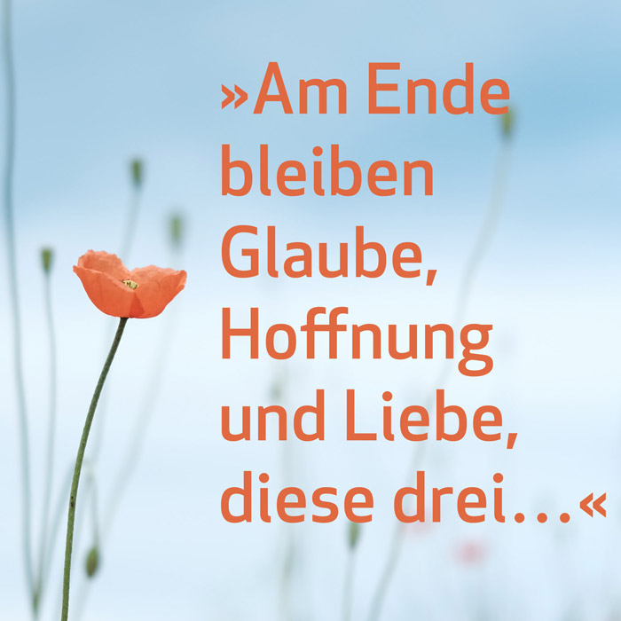 Es gibt kaum ein besseres Wort, das ich an den Anfang dieses neuen Jahres stellen könnte: Hoffnung, eine der Urkräfte, die uns gegeben sind, um das Leben zu bestehen, vielleicht auch, es überhaupt zu verstehen. Sie alle kennen vermutlich die wunderbaren Worte des Paulus aus dem 13. Kapitel des 1. Korintherbriefs: »Am Ende bleiben Glaube, Hoffnung und Liebe, diese drei…«. Was am Ende bleibt, dann, wenn alles gesagt ist, ist das, was Bestand hat, was wirklich wesentlich und bedeutsam ist für unser Leben – und was am Ende stimmt und so wichtig ist, kann am Anfang nicht falsch sein. Widmen wir also einige wenige Minuten am Anfang dieses neuen Jahres der Hoffnung.
