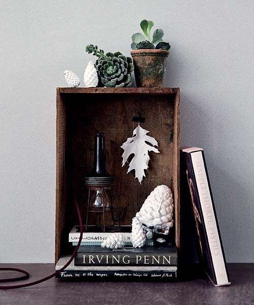 Vor allem im Herbst sammeln sich bei uns im Haus besonders viele Fundstücke an. Manchmal gleichen die Hosentaschen der Kinder kleinen schwarzen Löchern – was da alles reinpasst! Doch der Herbst mit seinen bunten Farben währt nicht lange, die Tage werden kürzer, kälter und dunkler. Diese Stimmung ist oft das, was wir in unseren Breitengraden mit dem Winter verbinden. Aber auch Schnee, Eis und knisternde, frostklare Tage. Wir sind daran gewöhnt, und es liegt eine zähe Langsamkeit über dem Winter. In sie tauchen wir jetzt ein. Wir gehen hinaus, lassen uns inspirieren, nehmen die Eindrücke mit nach Hause und nutzen Sie die dunklen Stunden, um die Formen des Winters zu einem Teil unserer eigenen Winterlandschaft zu machen.