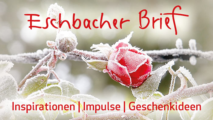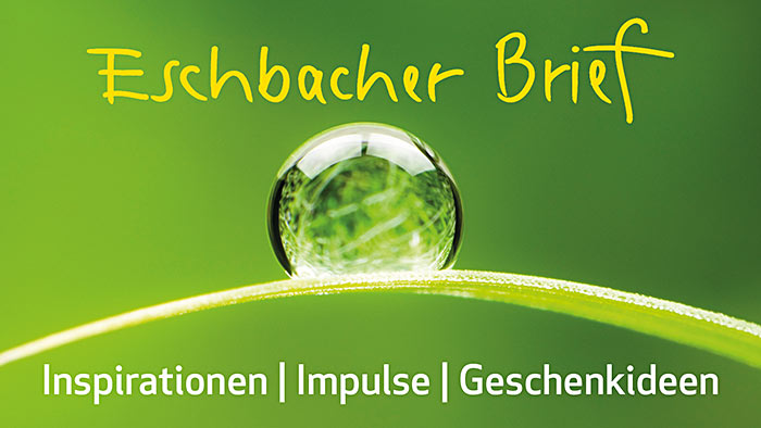 Bestellen Sie noch heute den kostenlosen Eschbacher Brief zu sich nach Hause. Er enthält neben aktuellen Informationen zu unseren Neuerscheinungen spirituelle Impulse, Texte und Gedichte, die Sie einladen, im Alltag einen Augenblick innezuhalten.