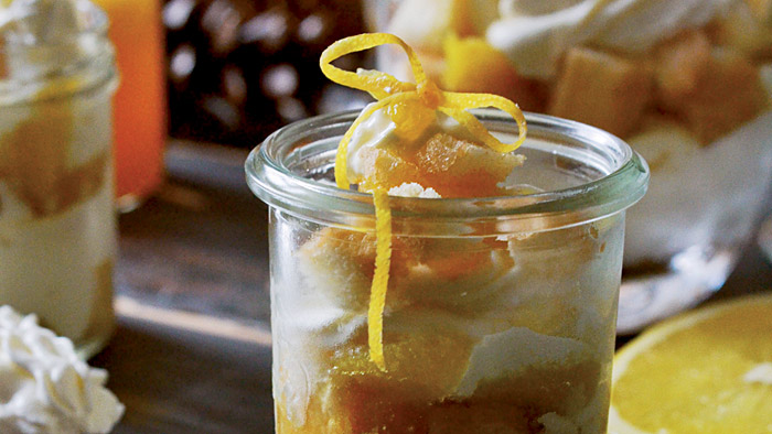Diese Tiramisu kann jeder an Weihnachten essen, egal ob Kind oder Erwachsener, denn sie kommt ganz ohne Alkohol und Kaffee aus. Eine der Hauptzutat sind Früchte, die Saison haben. Für unser Weihnachtsmenü haben wir uns für Orangen entschieden.